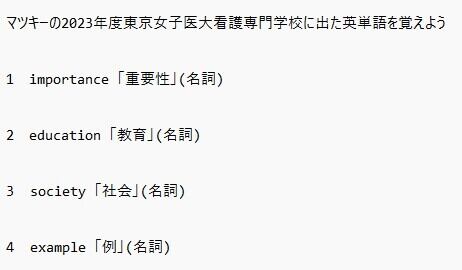 マツキーの2023年度東京女子医大看護専門学校に出た英単語を覚えよう | 超格安の電子書籍専門のマツキ―出版とネツト物販